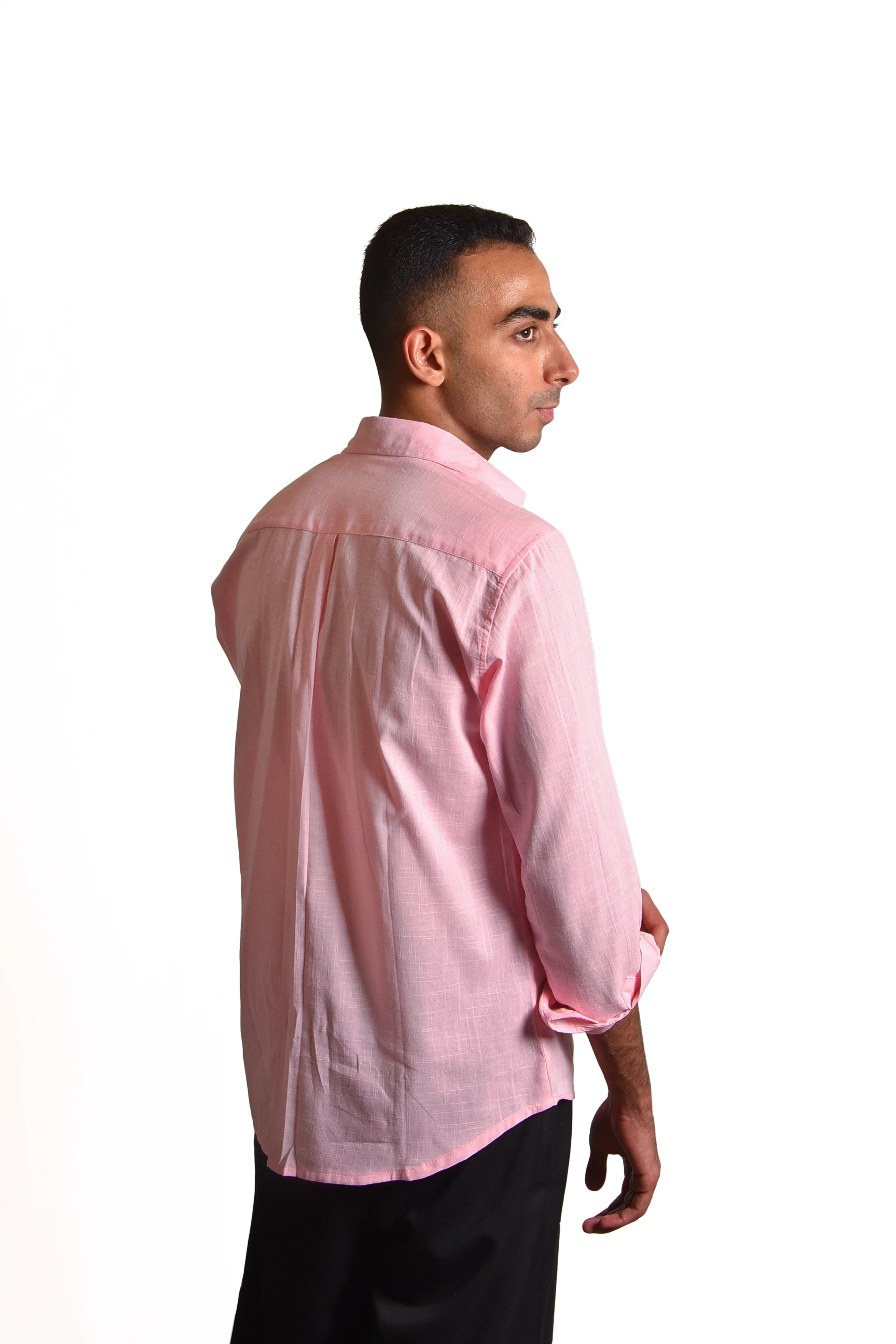 Elevate your summer wardrobe with this light pink linen shirt, designed to offer the perfect balance between style and comfort. Crafted from breathable natural linen fabric, this shirt keeps you cool and fresh throughout the day, making it an ideal choice for warm weather and sunny days.