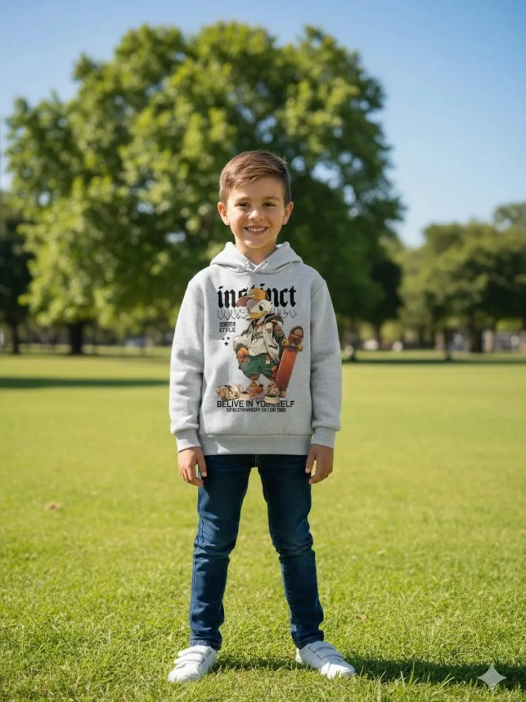 It also includes a practical front pocket to store small essentials or keep hands warm. Easy to style with jeans or sweatpants, this hoodie adds a modern and stylish touch to your child’s outfit.