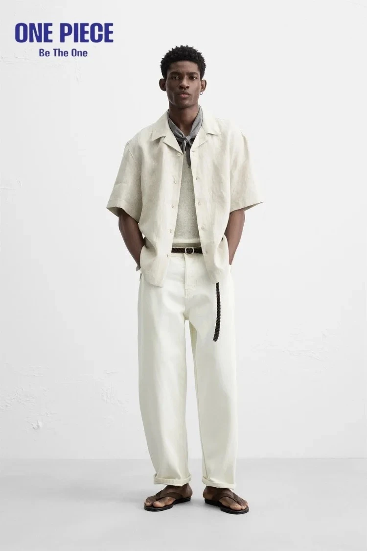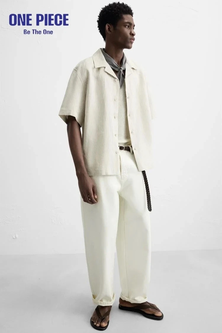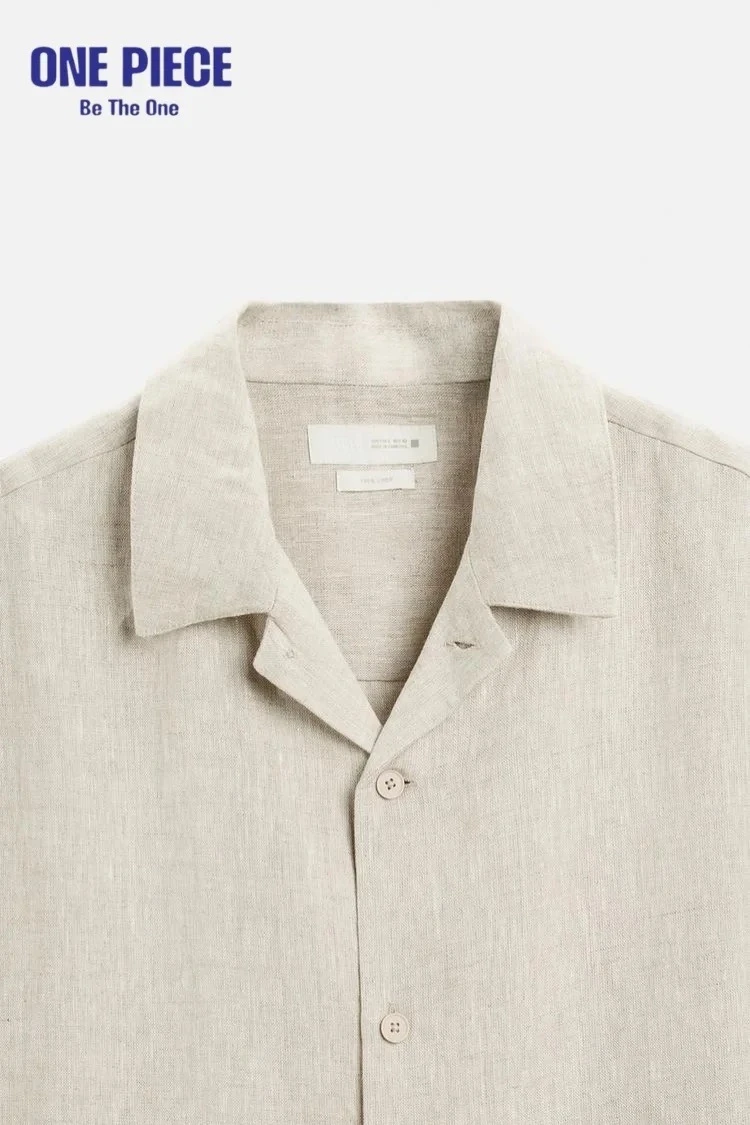 Relaxed fit linen shirt. Bowling collar and short sleeves. Hem with side vents. Button fastening.