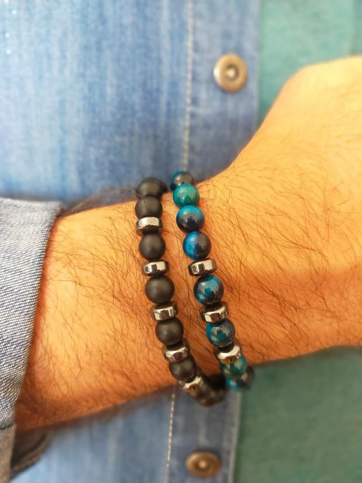 بريسلت من حجر عين النمر الافغاني لون نادر جدا مع الاونكس المط وفواصل الهيماتيت