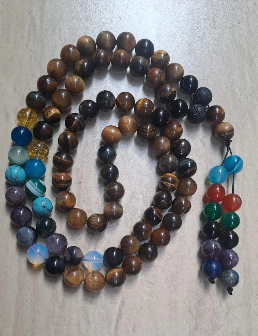 مطعمه بالشاكرات السبعه الطاقه مع حبات من عقيق سليماني وحجر الافا البركاني ١٠٠حبايا حجم الحبايا ٨مللي